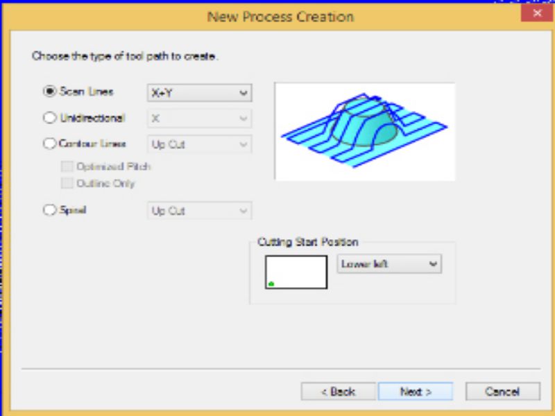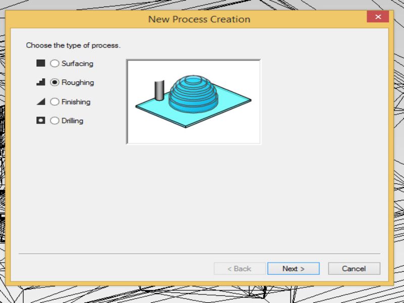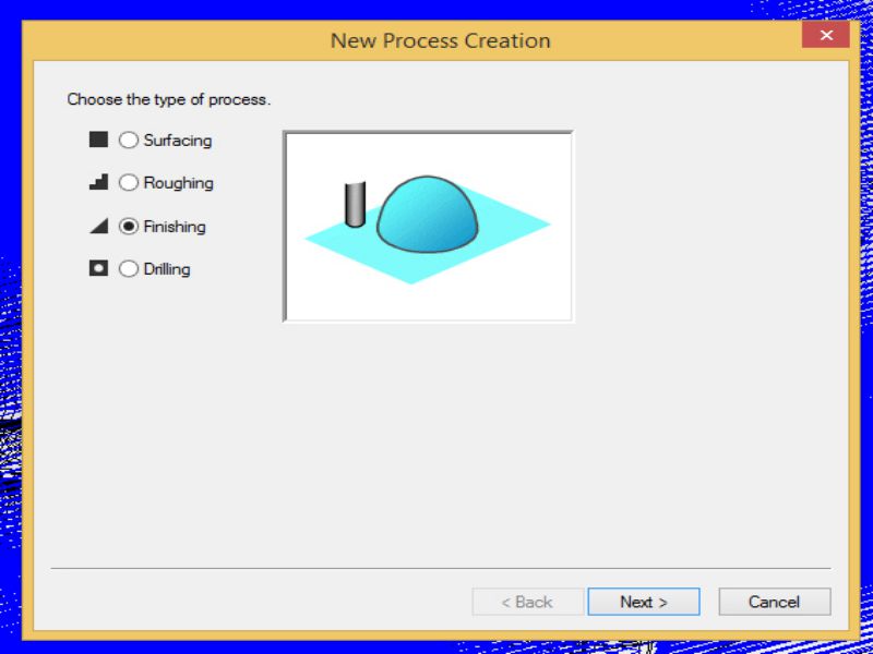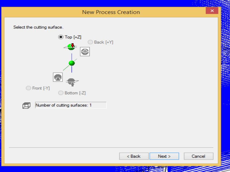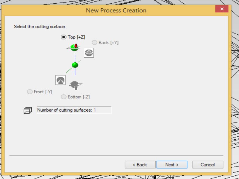 13. Again, go to "Set" and 'New Process' then check on 'Finishing', then 'Next'.~~~~~ 14. Check on 'Top [+Z]' then 'Next'.