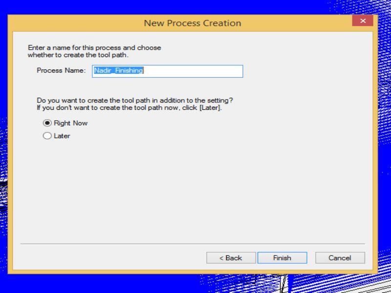 19. Name it, like 'Nadir_Finishing', then 'Finish'.~~~~~ 20. click on "Cut",which can be found on right bottom of the main page.