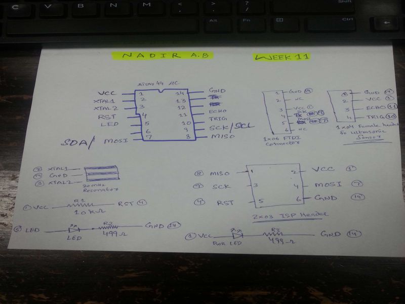 I sketched its pin diagram on a page shown below, I connected basic necessary components to the IC, like:
