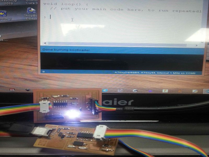After complete soldering of the components to the board, the next step is to up the circuit by burning bootloader through an ISP programmer. So, here I did it successfully.