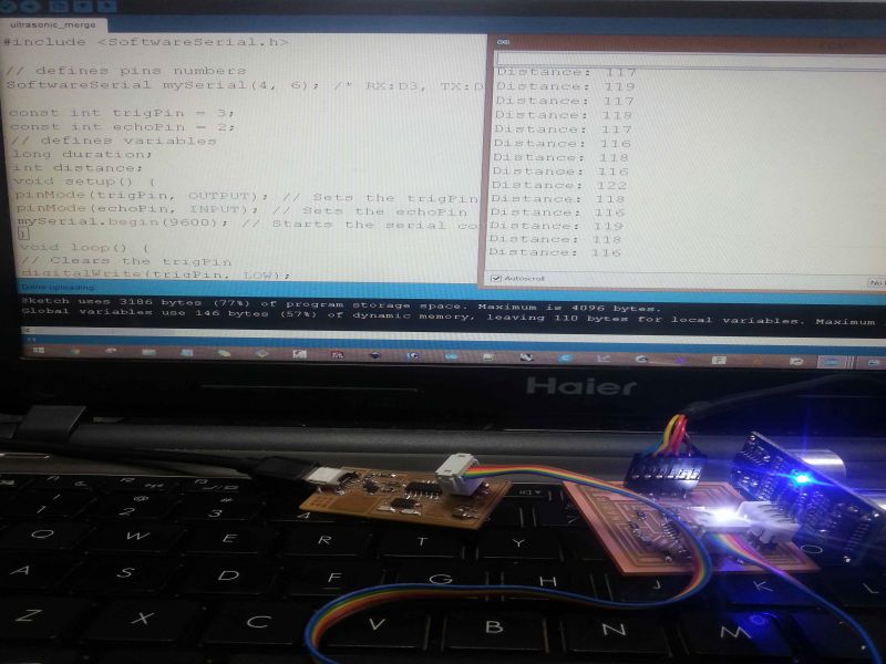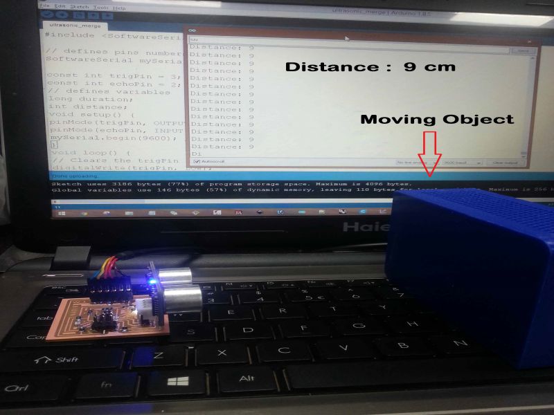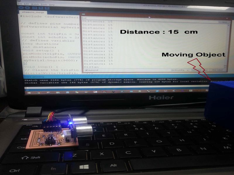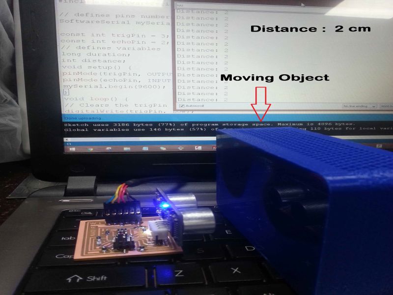 Here is the code, which uploaded and then sensor gives value in serial monitor as I changed the object distance from the sensor. The unit of distance is in centimeters here in this case.