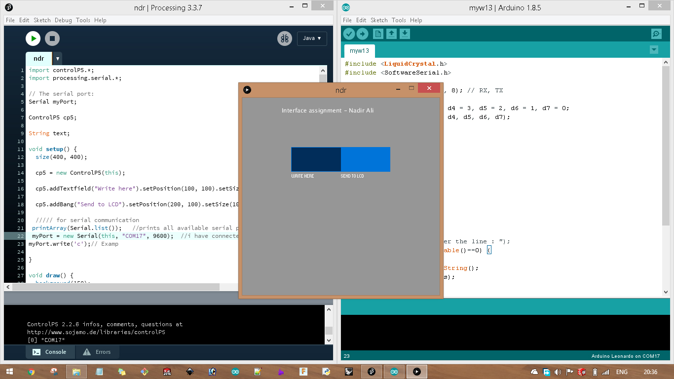 text("Interface assignment - Nadir Ali", 80, 30); //"text", x coordinate, y coordinate