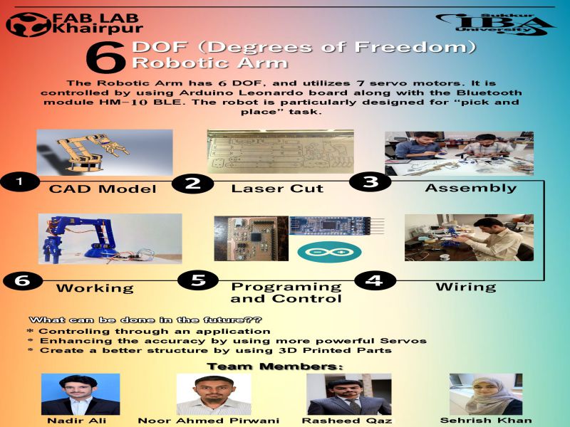 - CAD Design of the Robotic arm, Laser cut and 3D print the parts. (This Task has been Assigned to Mr. Noor Ahmed Raza Pirwani )