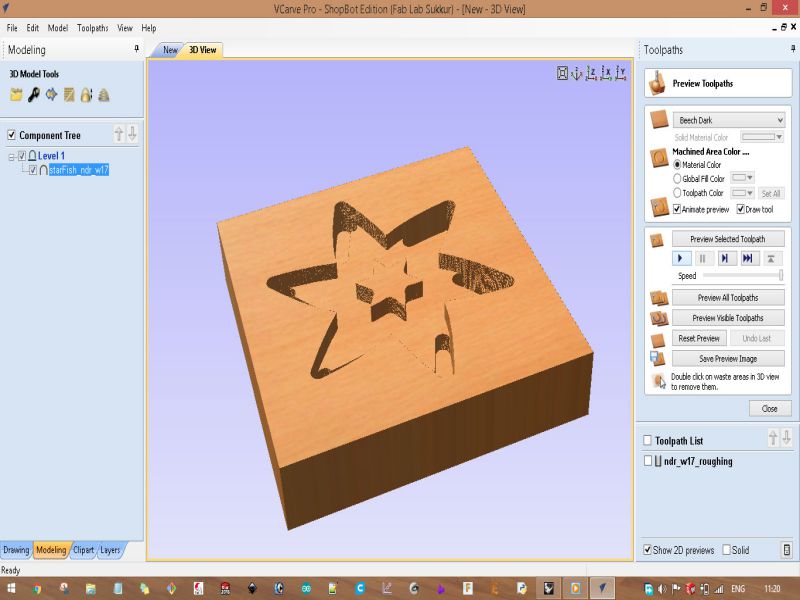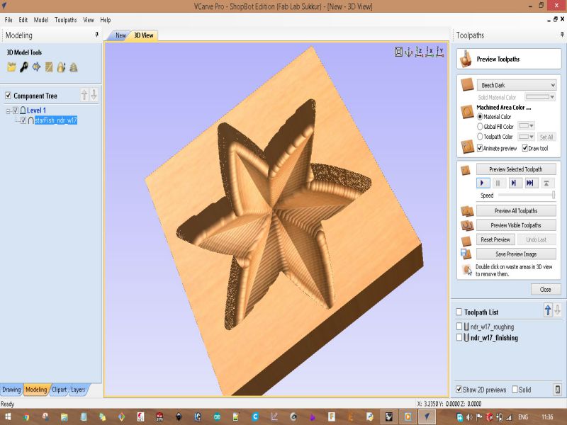 Now, It is the time to generate toolpaths in Vcarve for files for shopbot machine. I Generated two files, one for 'roughing' and one for 'finishing'.