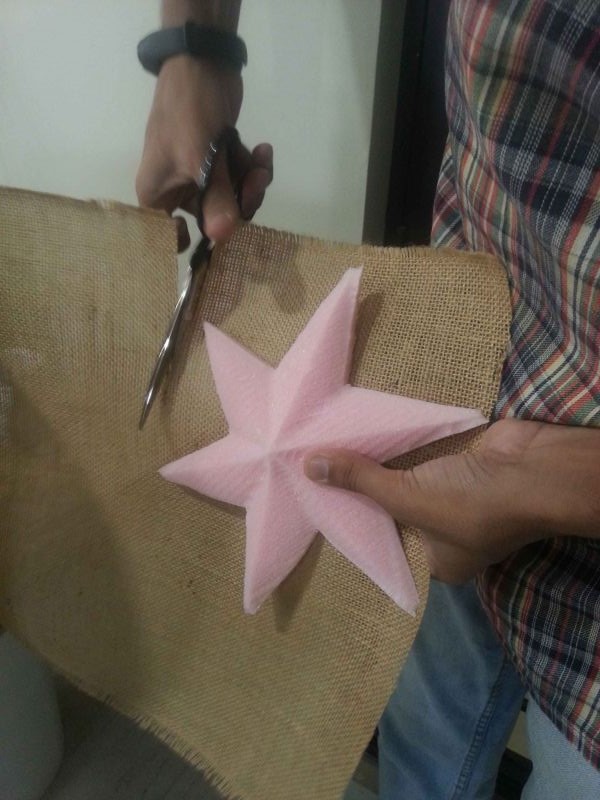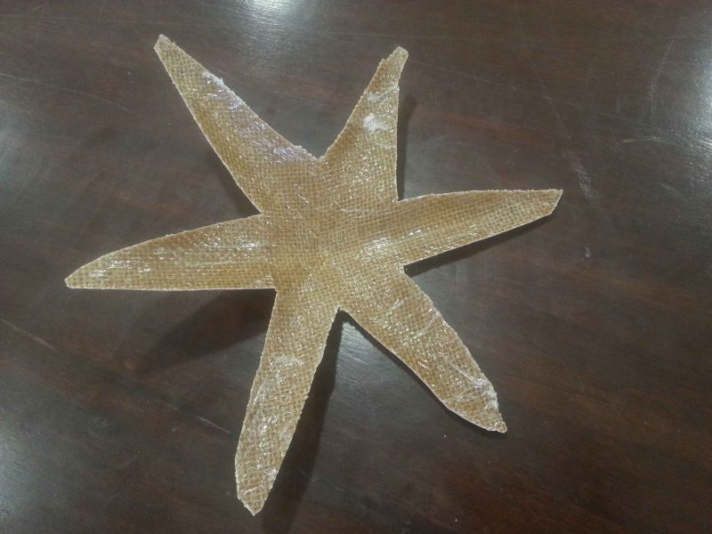 Total measurement of the mixture: If the weight of fabric is "A" then total mixture weight should be "3A", means three times of the original weight of two layers of fabric. Here, in my case the weight of fabric was near about to 40 grams, so my totla mixture of epoxy and hardner was 120 grams. I applied 1:2 ratio in weight, 40 grams of hardner and 80 grams of epoxy. And, it gave me satisfactory rsults with very hard and very light 3D shape of star fish.