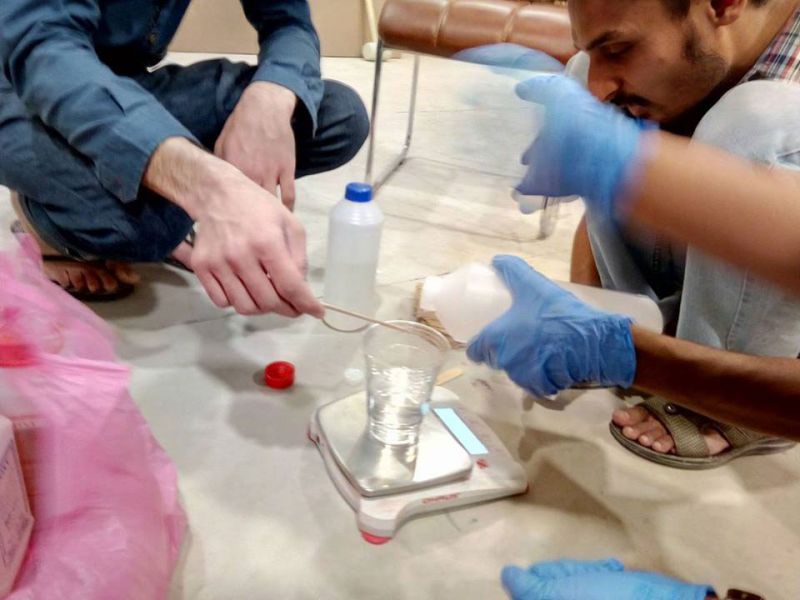 - Make mixture of the material using the ratio of 1:2 of hardner and epoxy