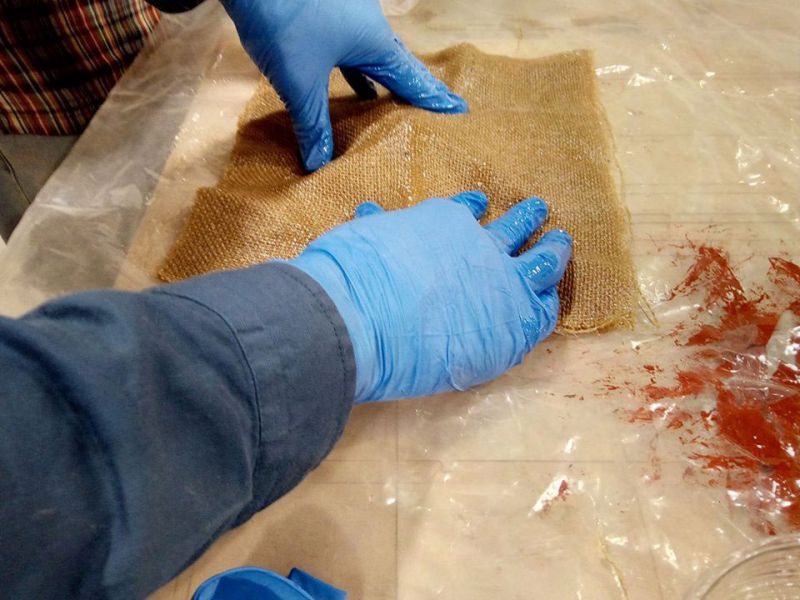We are using Jute as the fiber, we already cut the two pices on Laser cutter. The arrangement of the composite is shown below: