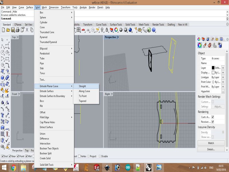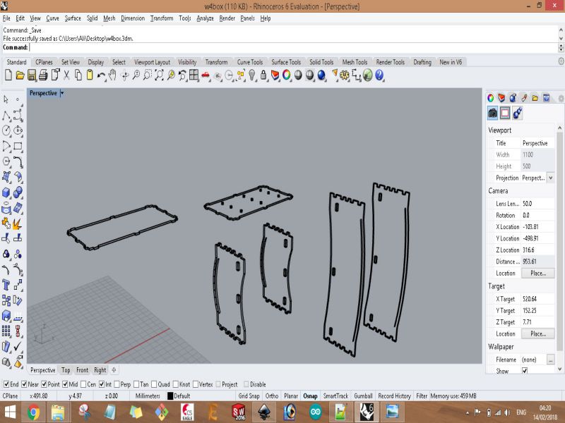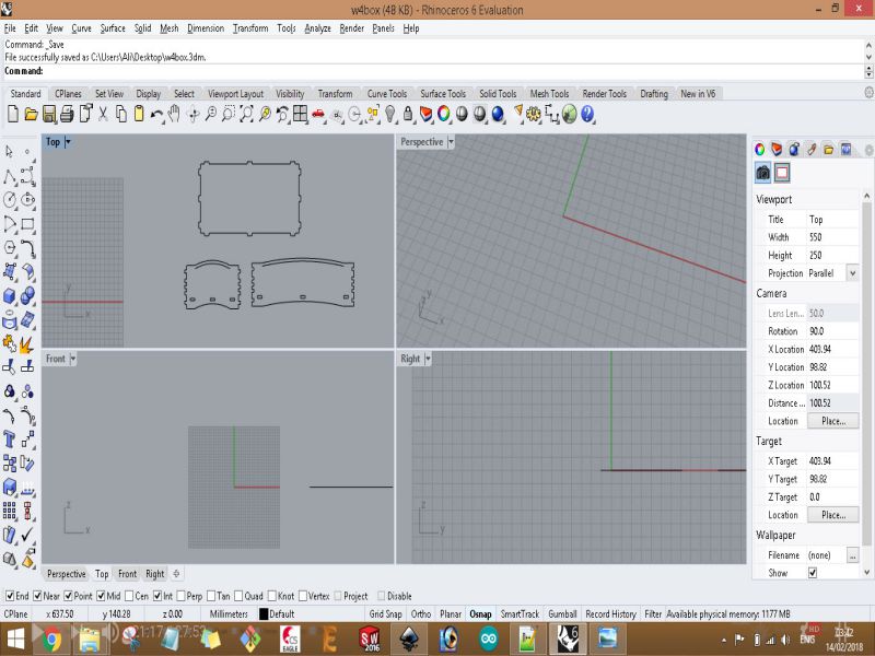Again, I wanted to design a simple pen container box. For this, I used 'Rhinoceros 3D' software, which is non-parametric, to make it parametric we have to use 'grasshopper' which is 'visual programming language'. I installed 'Rhino 6' on my laptop. Then I tried to design the box, below snaps show my first sketch.