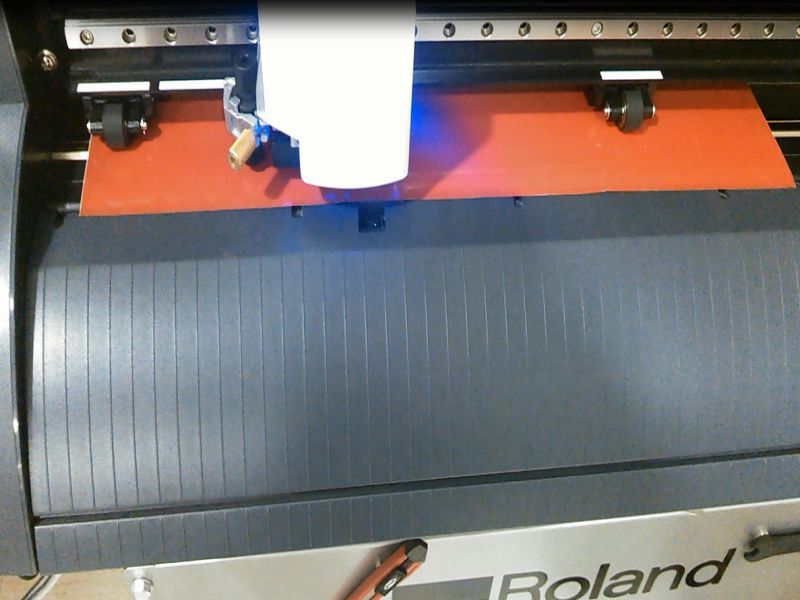A 'Vinyl cutter' is a computer controlled machine. This machine is controlled by a computer and operate similar to a printer. A vector based design is created in software program (I used InkScape) and then sent to the cutter where it cuts along the vector paths of the design. So, it doesn't work on bit map images, it works on vector based images or texts.