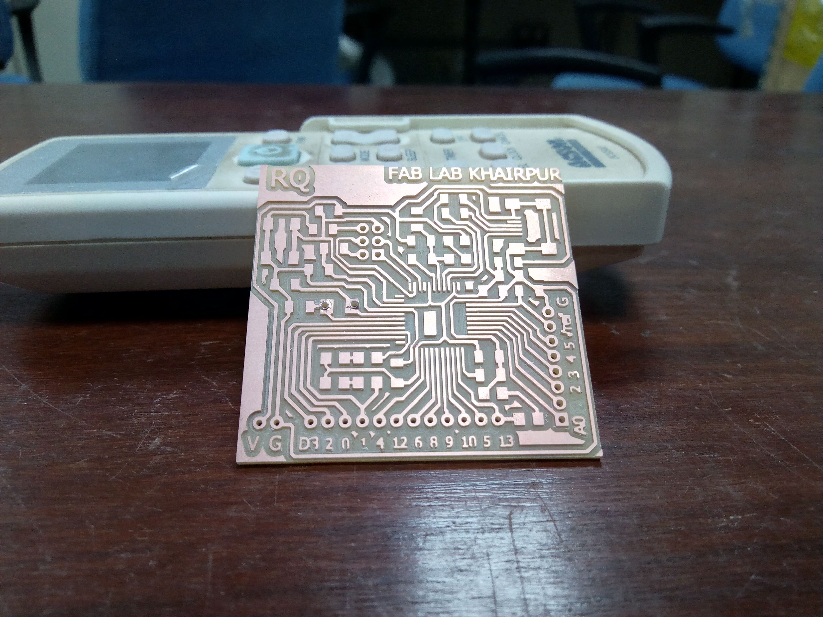 Now using the tolls for Traces(1/64) and Drill and Outline with 1/32, the board was milled.The board after milling is shown below: