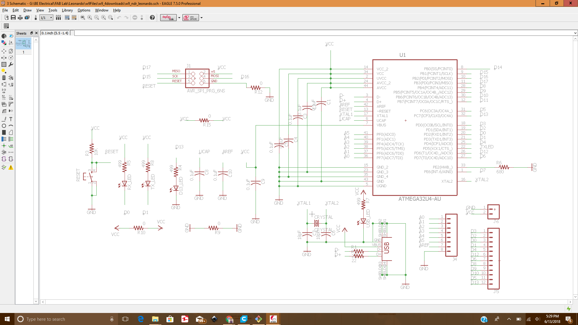 The arduino Leonardo schematic in Eagle