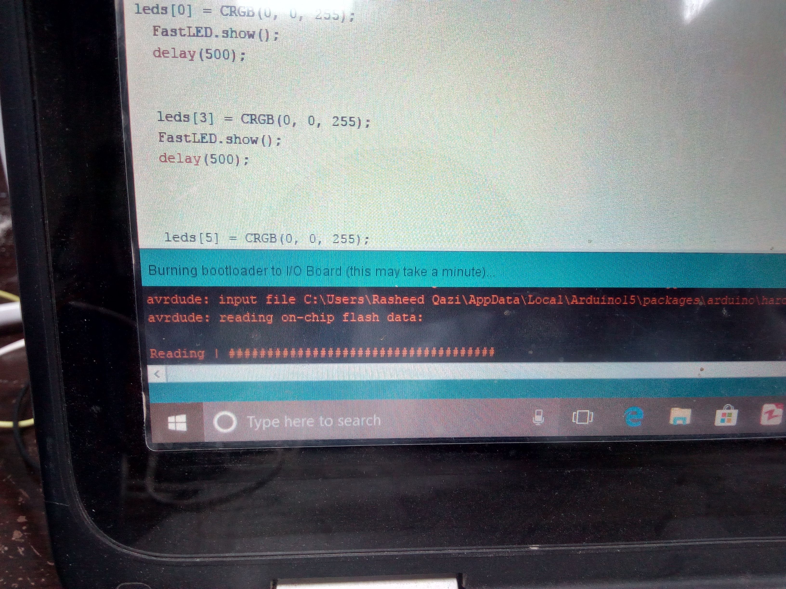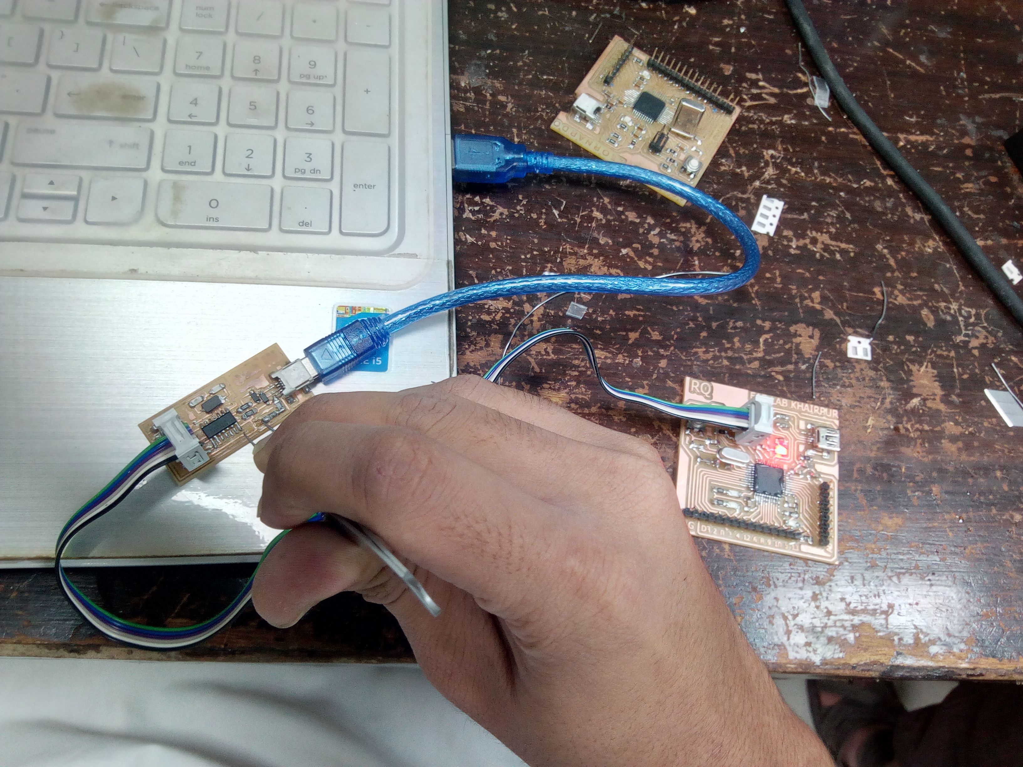 After programming the boards, I uploaded the code as shown below: