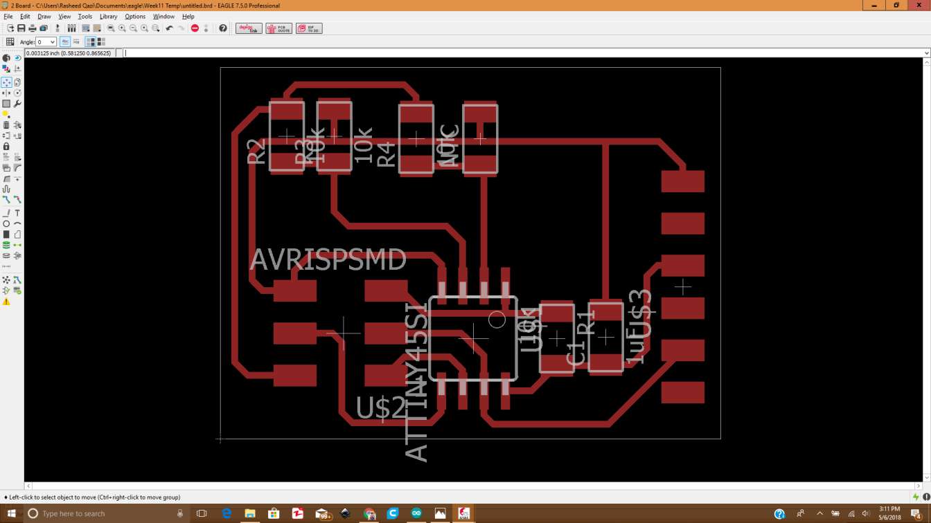 After making the .rml files, I milled the circuit using SRM-20 machine and the images of that are attached below: