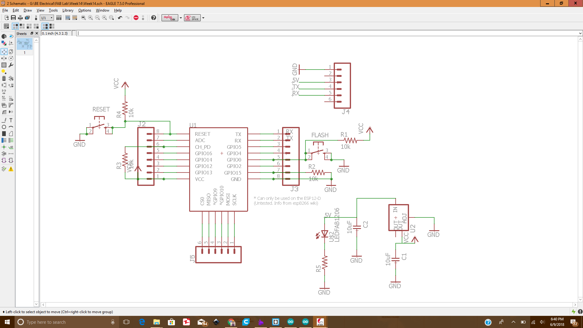 I designed the circuit using eagle software, the schematic of circuit after designing can be seen below: