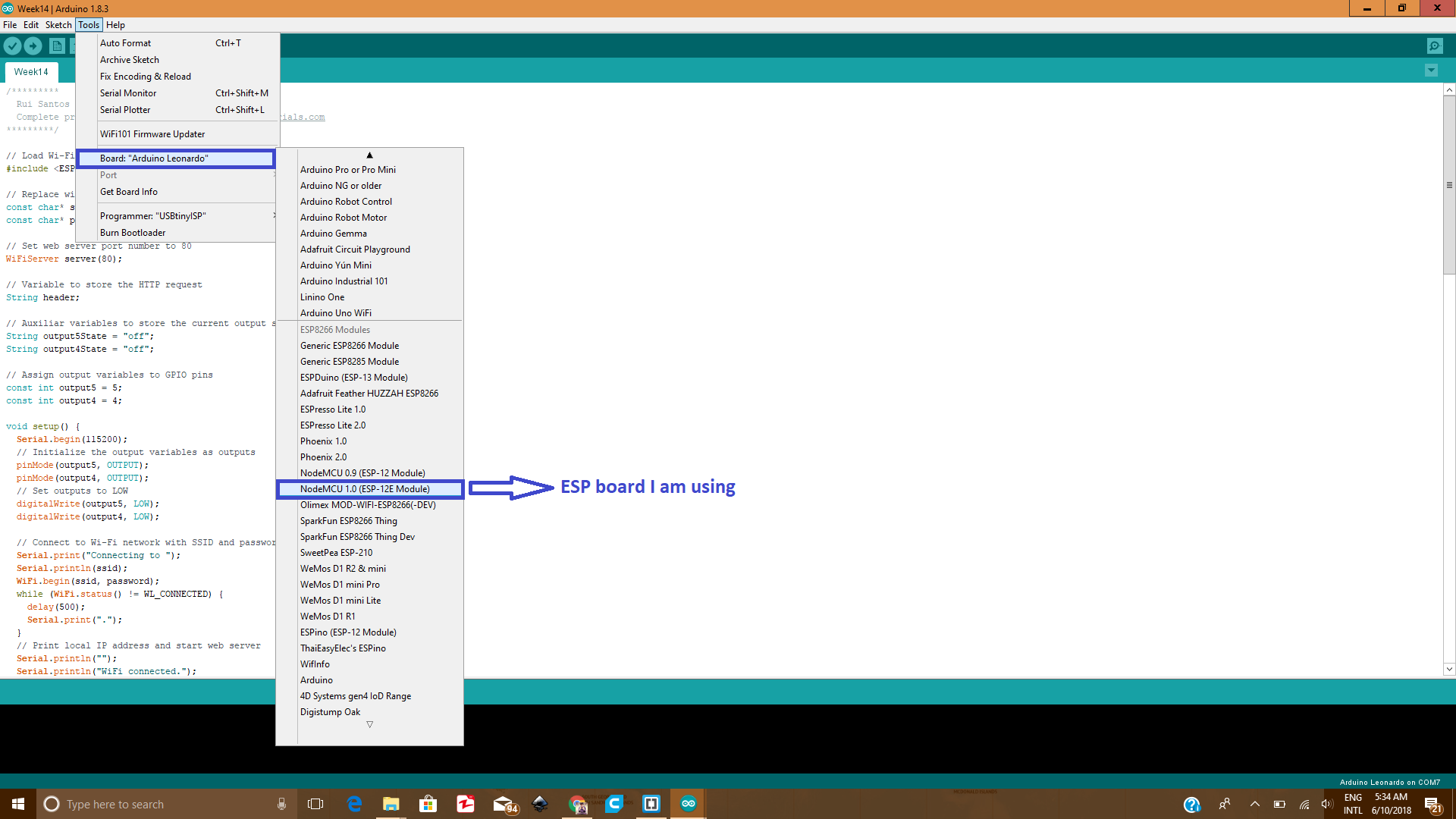For programming the board, I followed a short tutorial given Here. It tells about making a webserver on ESP8266.