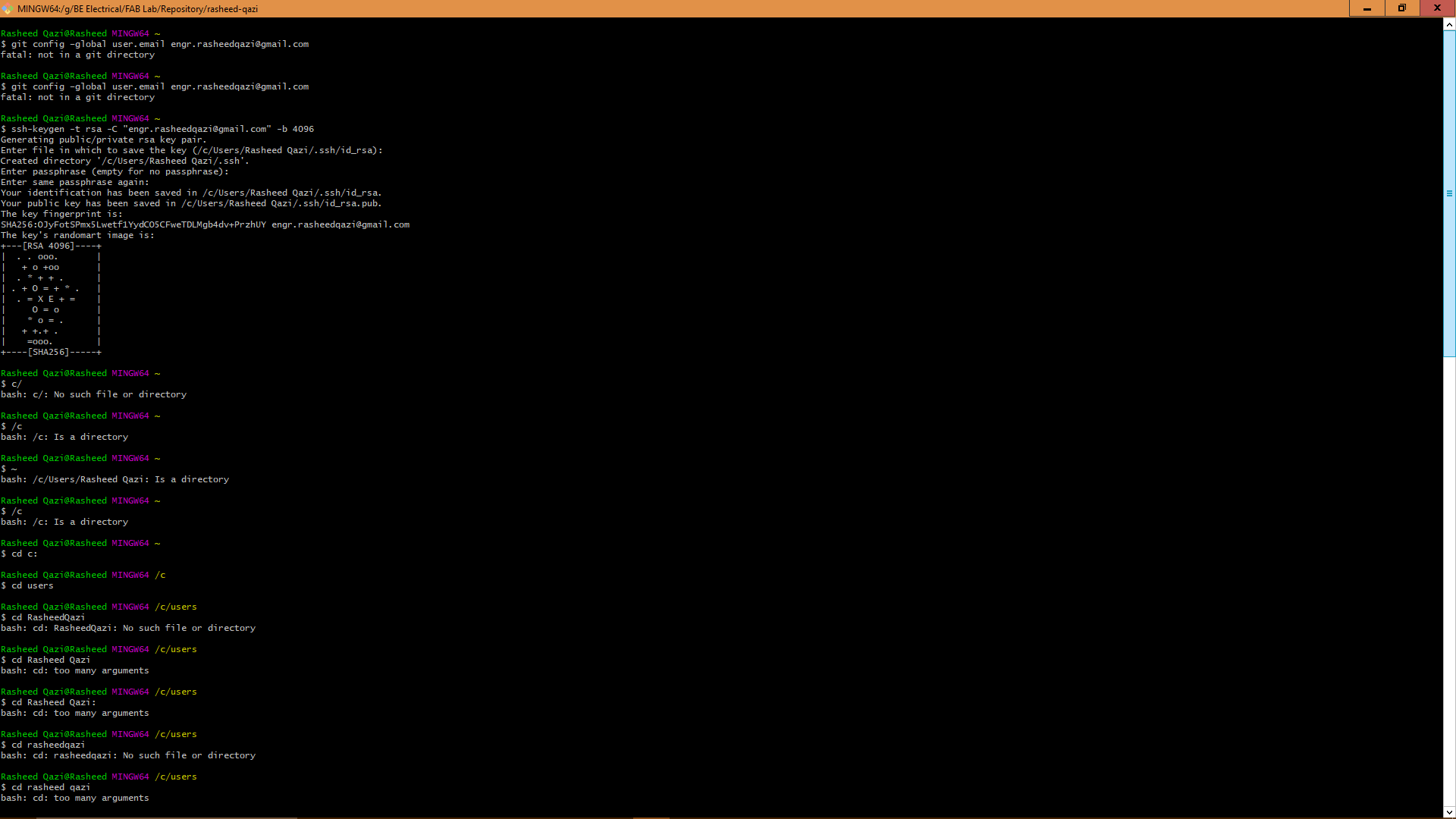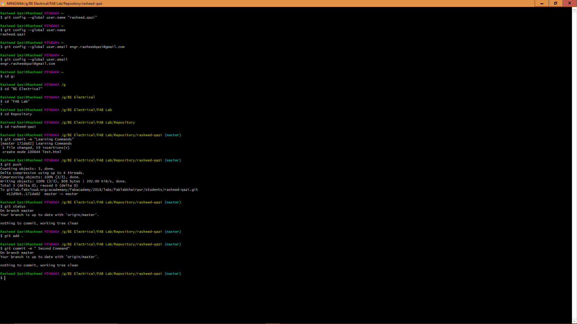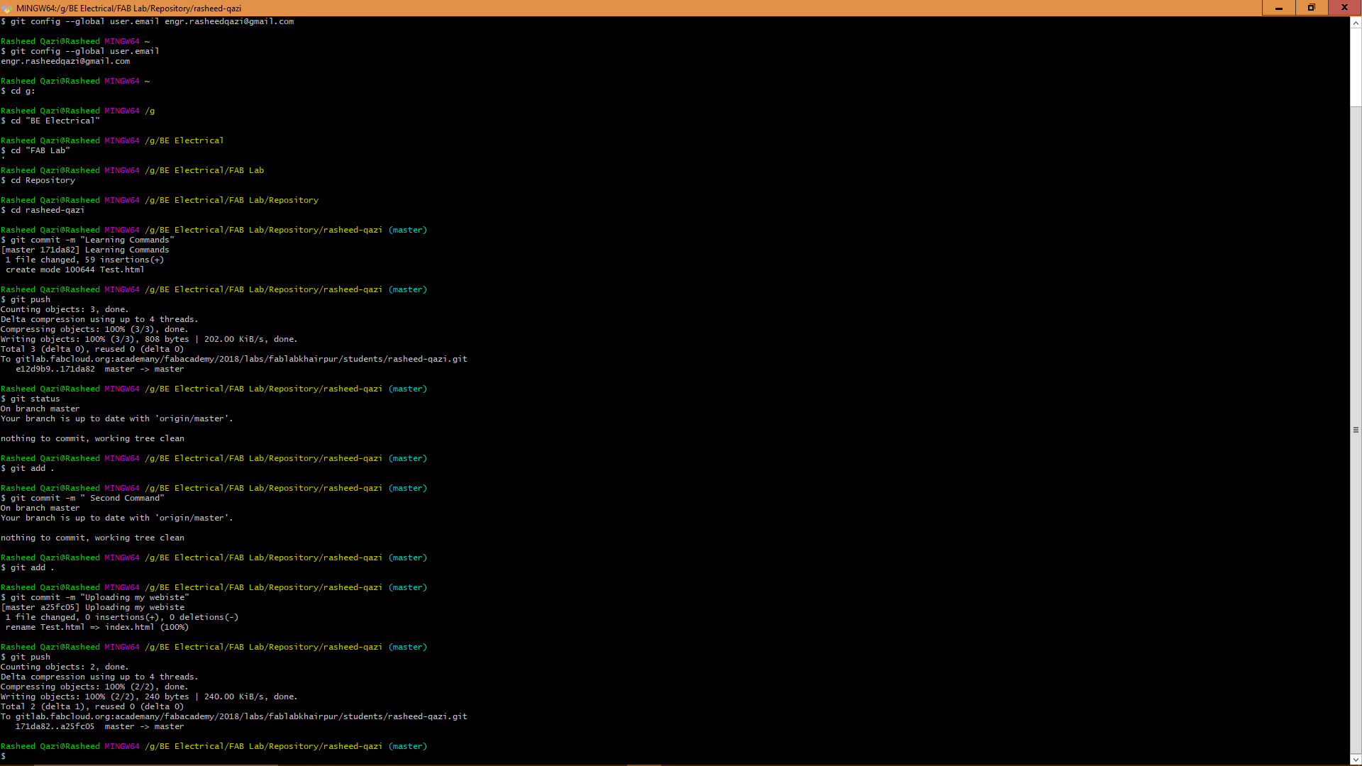 Cd Command is used to reach at the directory where the clone is, in my case the clone is at Desktop/fablab_data.