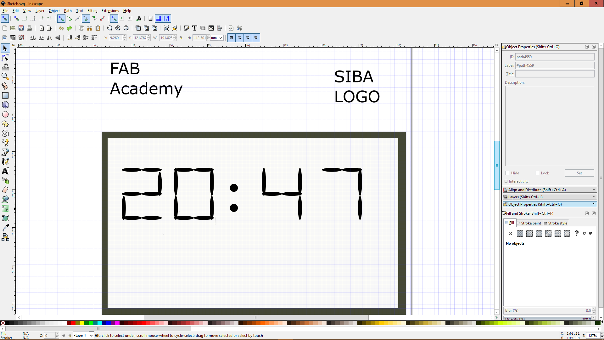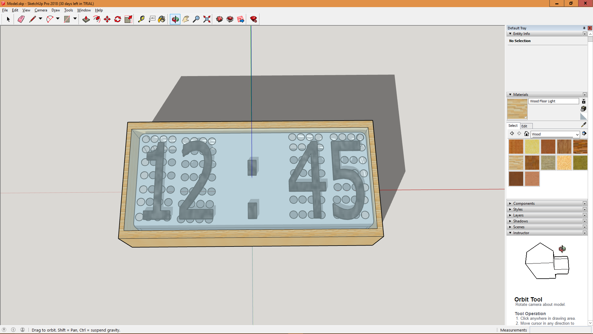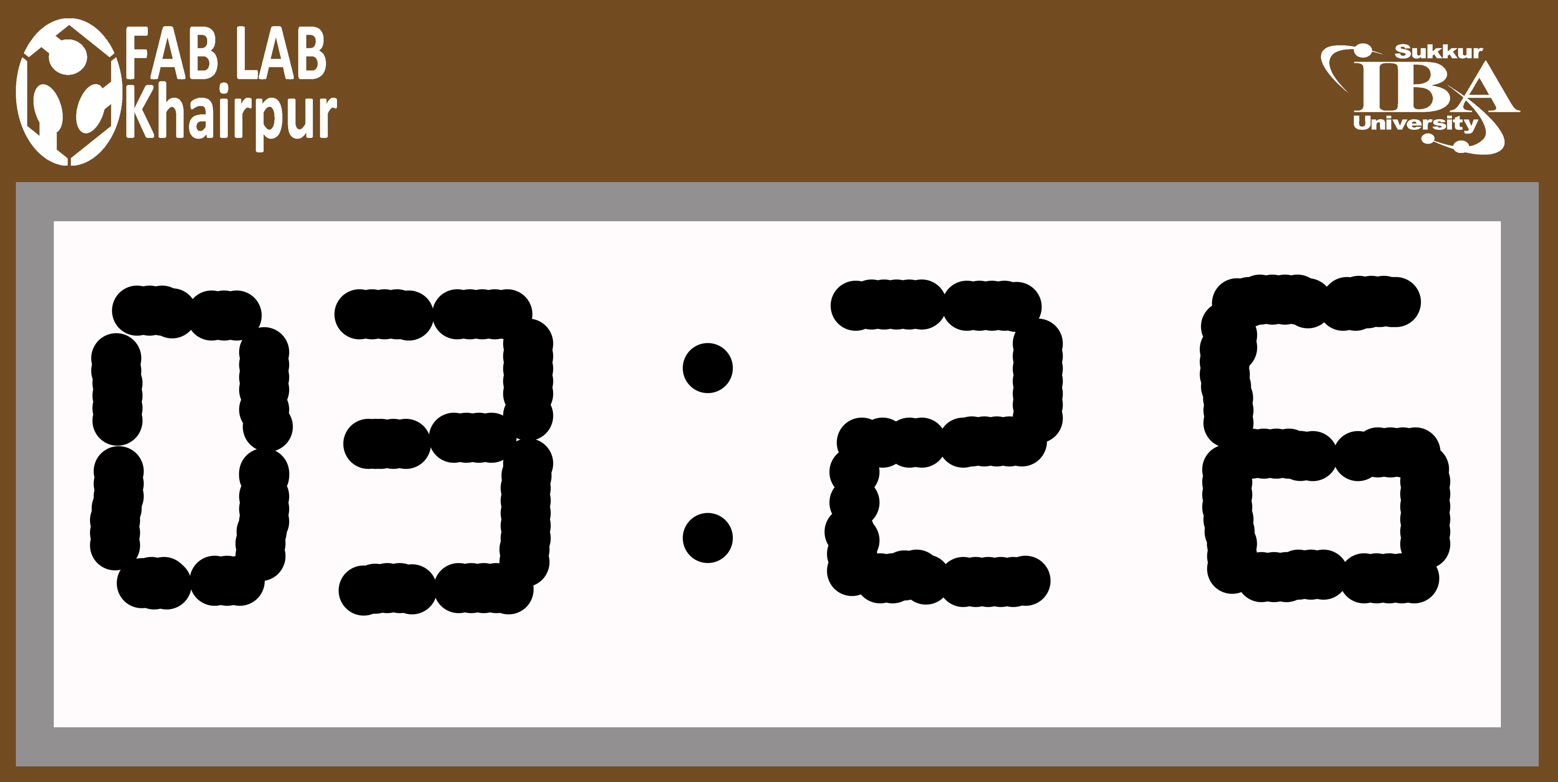 I used rectangles and extruded them, after that i placed 3D time showing how it would be displayed and at the back side the circles are showing holes for small electromagnets to make a digit.
