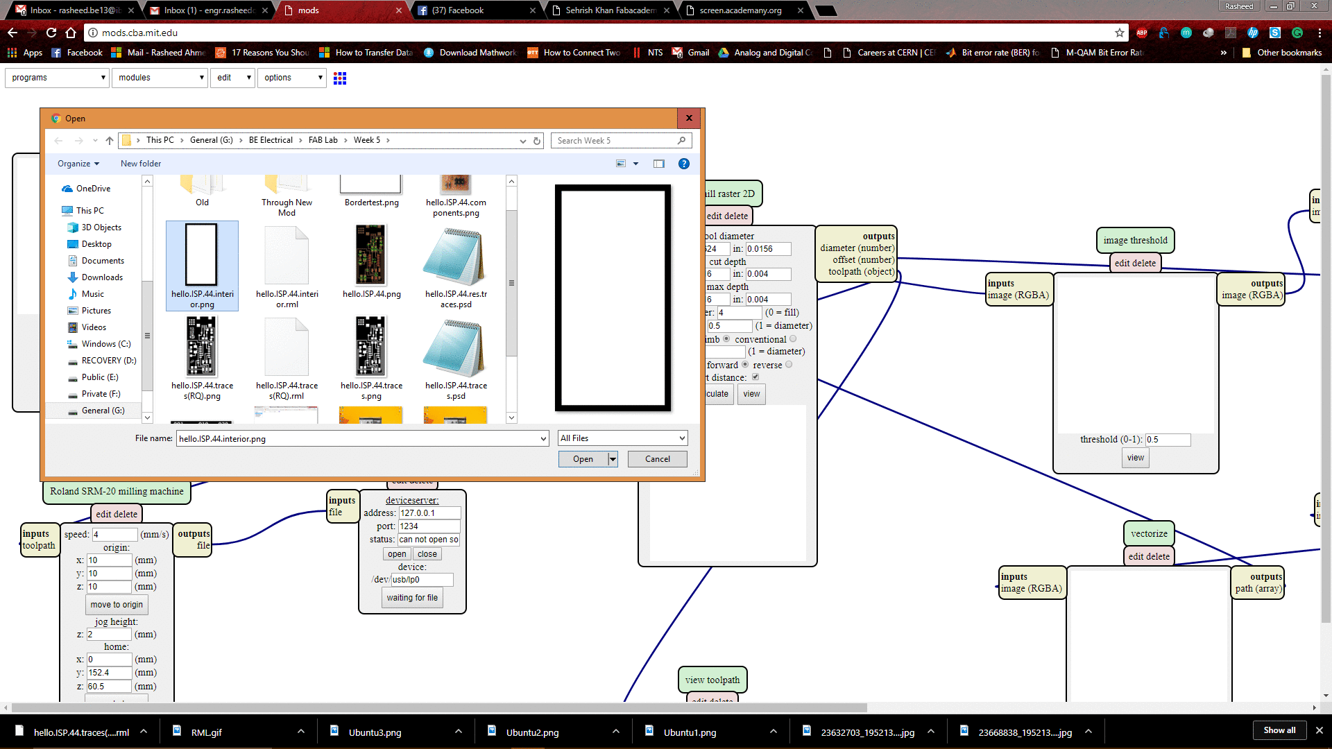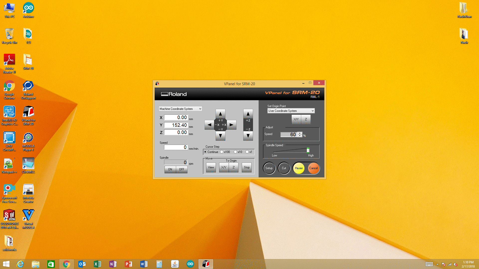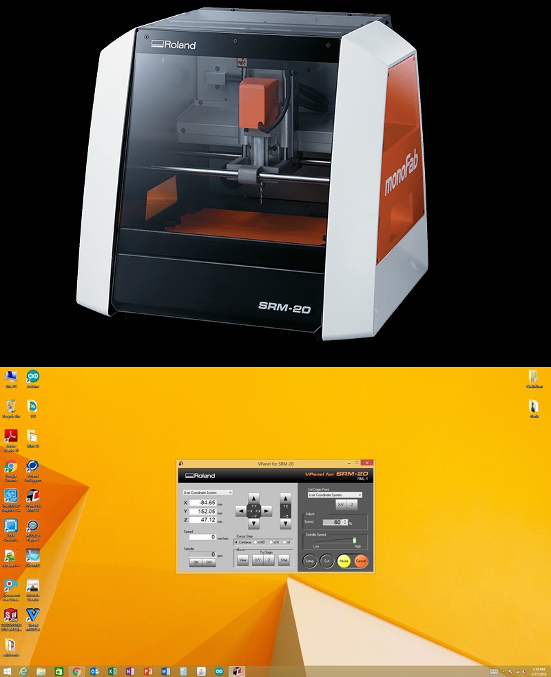 Roland SRM-20 machine for milling, and operated it using the VPanel software. It is connected with the PC through USB cable.