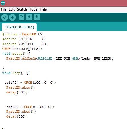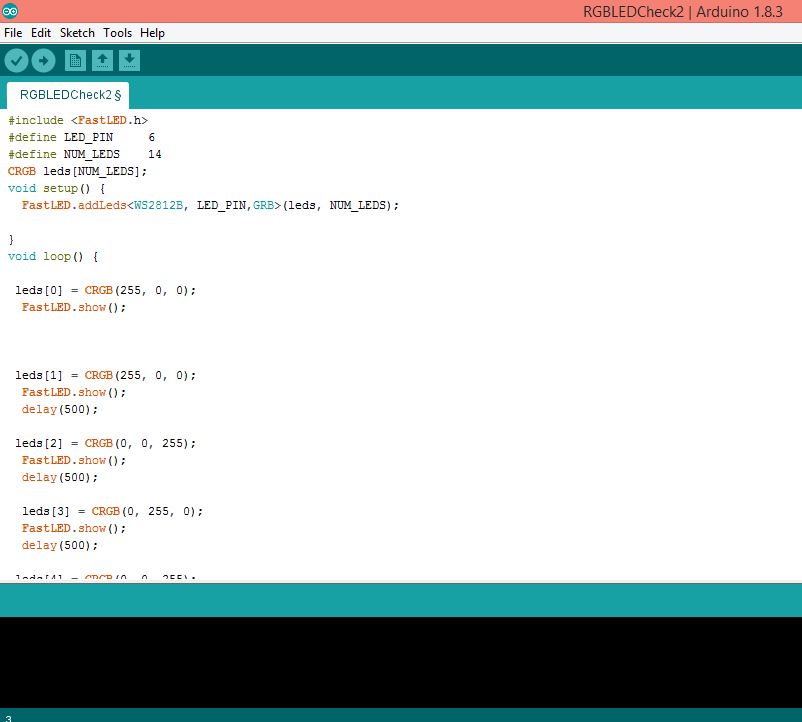 All you need to know about using FastLed is avialable here on GitHub There were several test codes available , so First I simply tried to glow all the leds by using the following program.