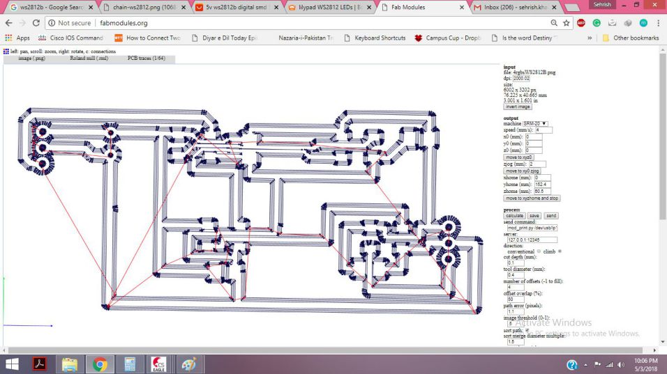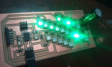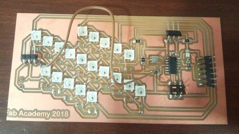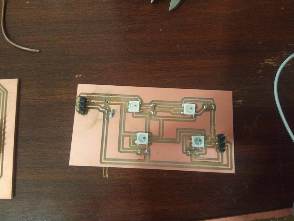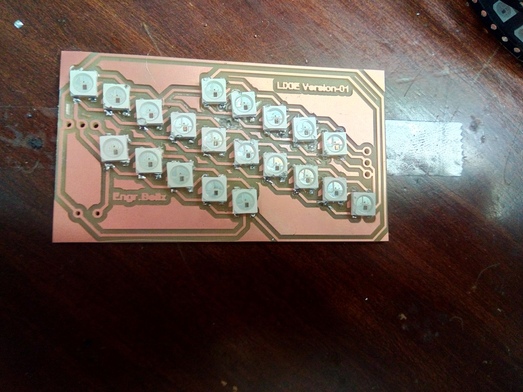 All was fine, from the circuit designed to the milling and soldering of board, even while testing i was getting output voltage at every led, but when I programmed the LEDs with FastLED.h and then Adafruit Neopixel LibraryI was not getting the desired results.The Leds were not being addressed proeprly, the Data was not being latched fro one LED to the other.