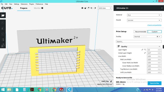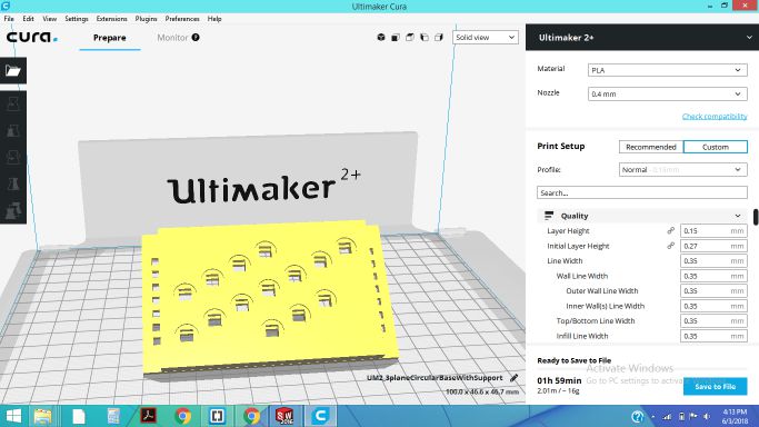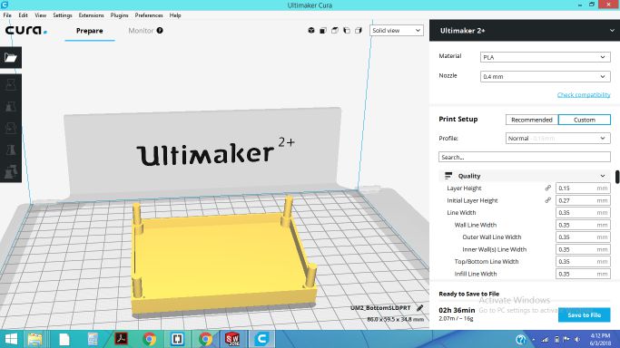 In the next step, I saved the solidpart file as .STL so that I can generate its GCODE file in cura software for 3D printing.