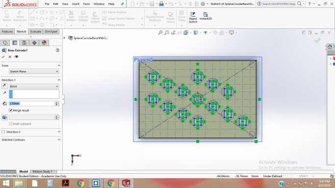 Using the Cut extrude comand, I made the space for LEDs on the initial plane.