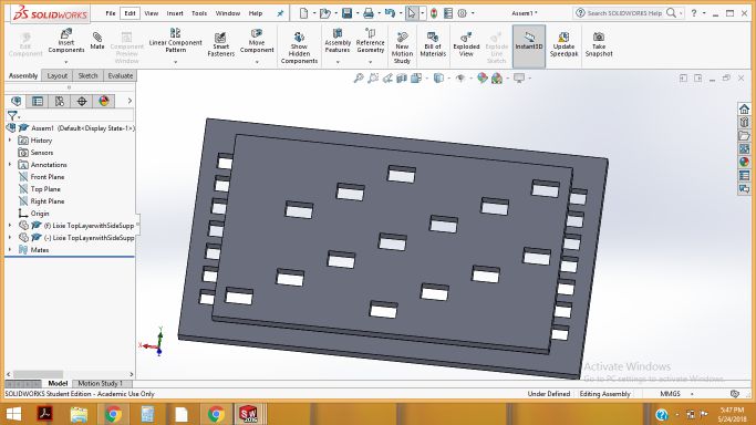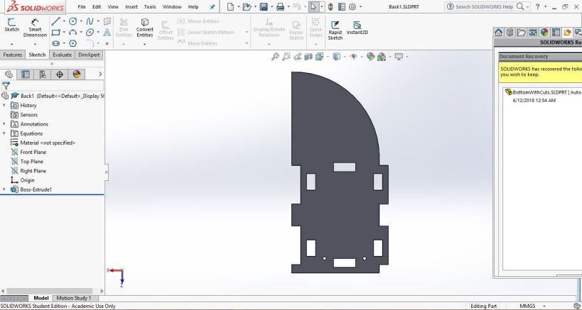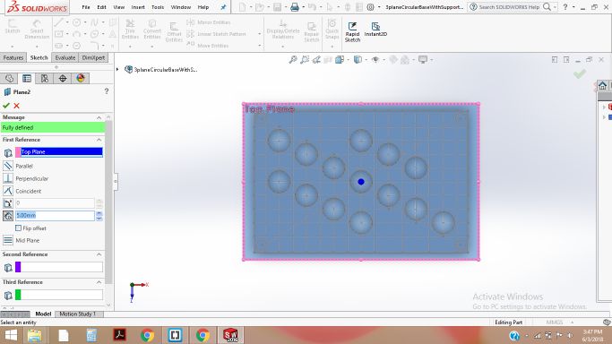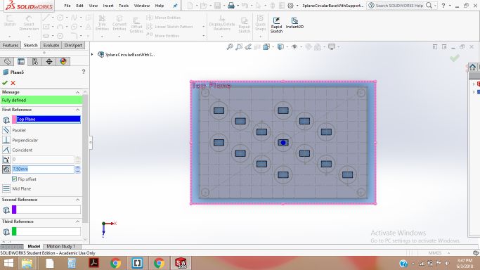 The design needs to be exact anc accurate, so in the starting I spent some time on deciding what the dimensions should be , and the arrangement of the rectangular holes, so that the LEDS can be placed beneath it properly . After making a few designs, I was able to make the complete design. Following are the steps along with illustrations of how I made the base parts.