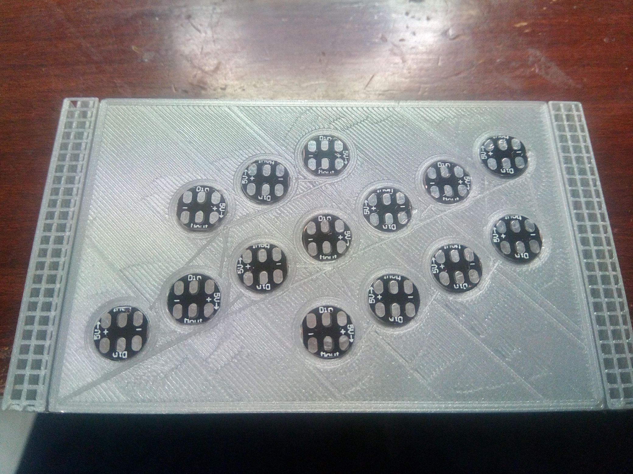 Neopixels (WS2812B RGB LEDs) fixed in the base and while soldering