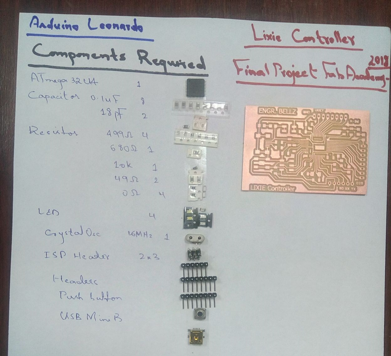 Now, I need to solder the components, and for that first I made the list of required components. Then , while soldering it was really important to solder the ATmega32U4 IC in a proper manner. I have never soldered this IC before , but with care I did the soldering. After soldering I got some issue while burning the bootloader , and as expected it was soldering issue.So, after fixing the soldering issue I burned the bootloader successfull.