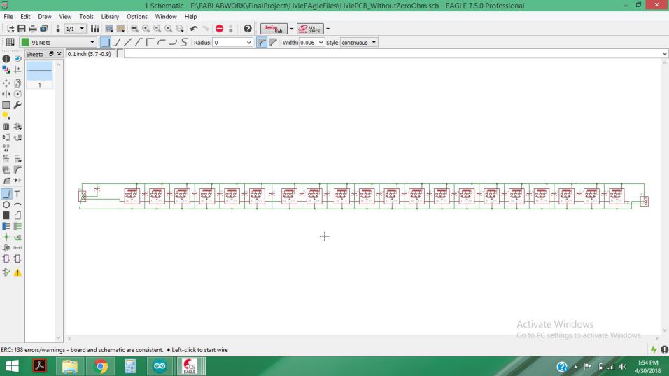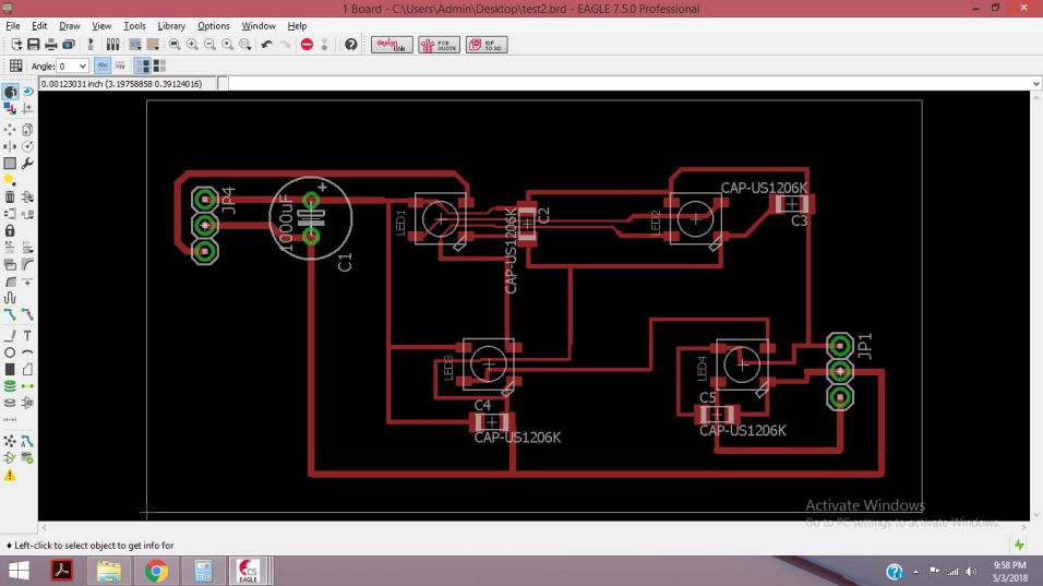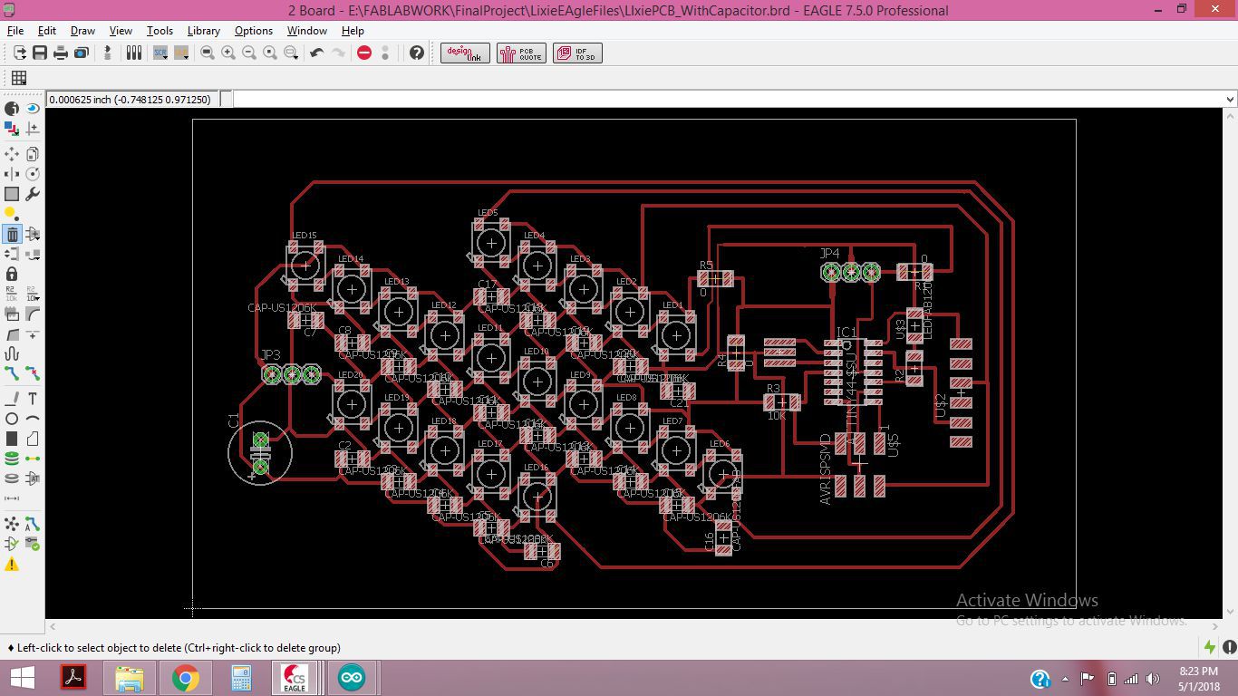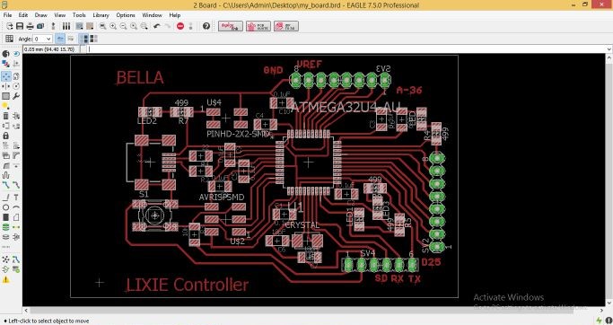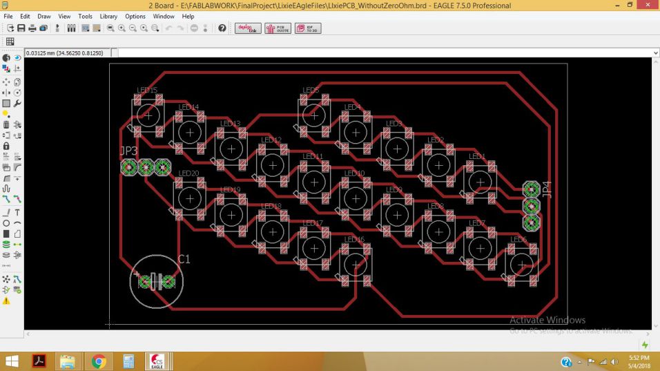 By keeping the Lixie circuit in mind, I made the circuit in Eagle since I have been using this software during the whole fab academy course, and arranged them in a way so that all the acrylic sheets can be placed and stacked together on the top of PCB .