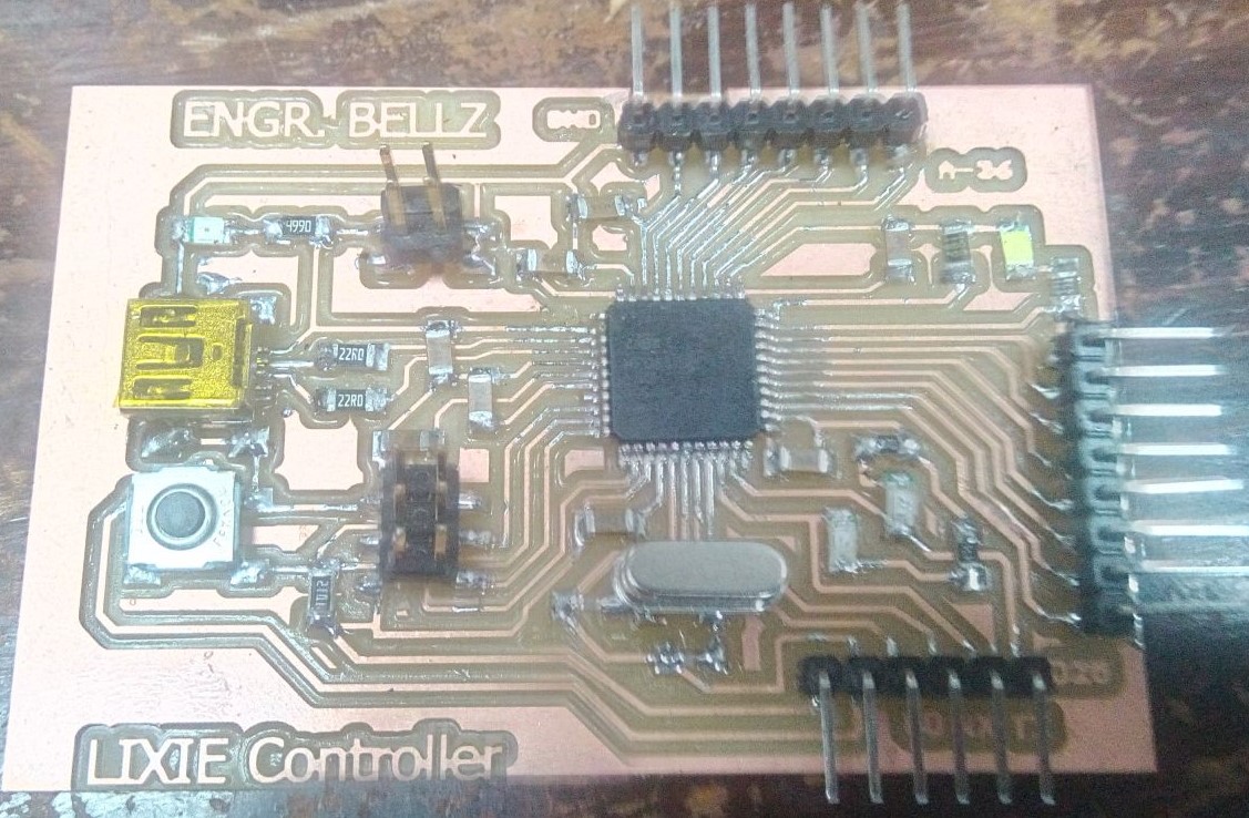 After genrating the RML files, I milled the board, and then soldered it. For testing purpose I programmed it with arduino, the code and result is shown below:
