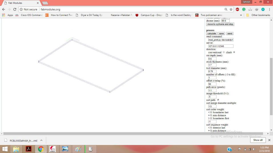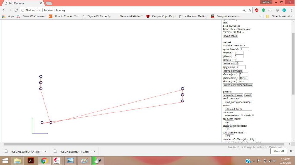 As we know that we need to generate .RML files for milling on Rolland SRM-20. So, I generated the .RML files in fabmodules.org as given below: