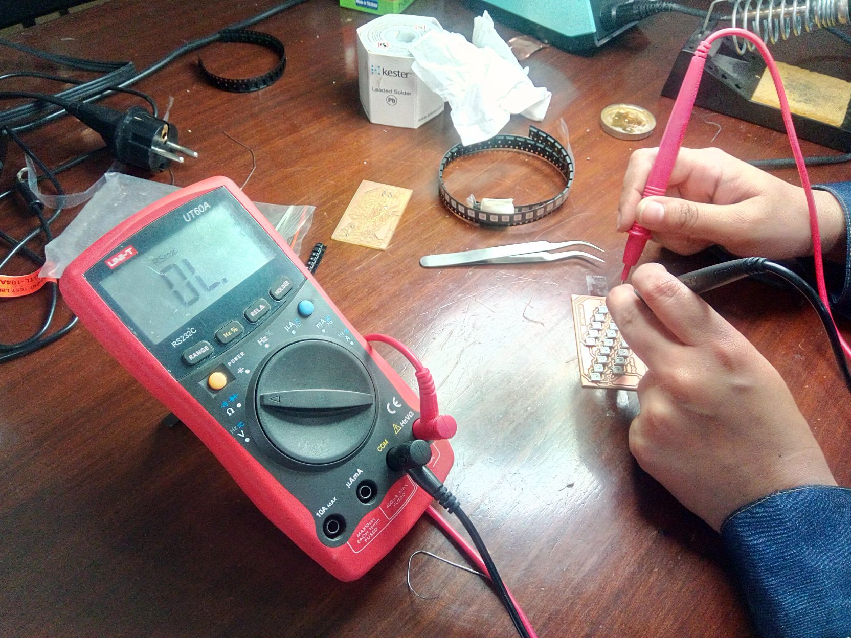 Soldering the WS2812B was really a challenging task, as the pads for the soldering have very little surface, so initially I tried to solder a few LEDs and then I soldered the LEDs on the board: