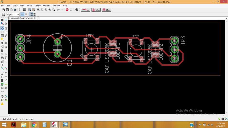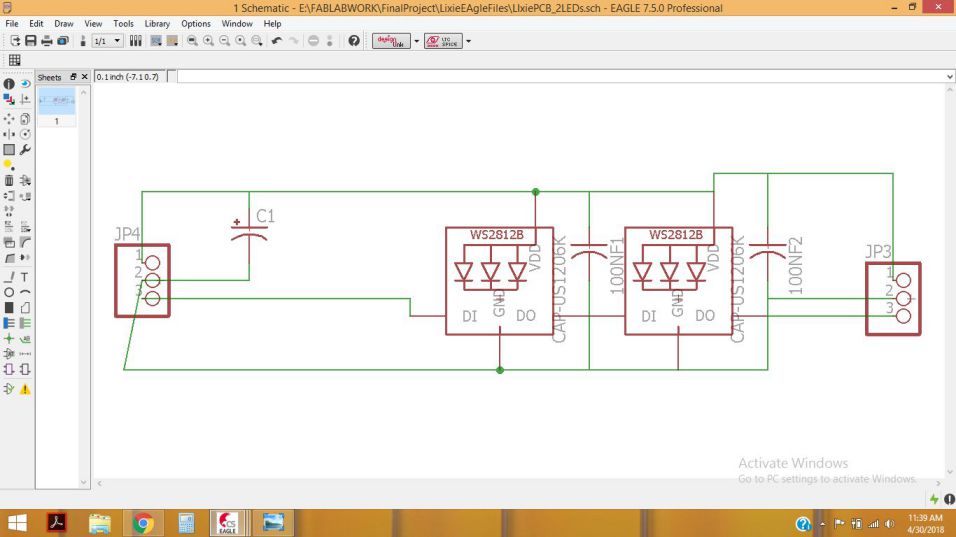 During my global review , I showed the Lixie PCB board to Prof.Niel , and he suggested me to make 2 RGB LEDs PCB board first , and then try for large number of PCBs.He admired me for choosing this final Project and he liked the idea of making the