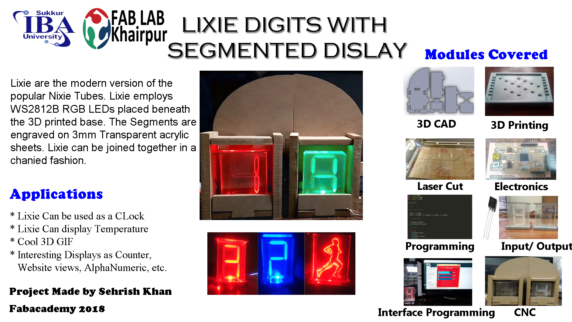 - Lixie is based on WS2812B LEDs, (or "Neopixels" Adafruit calls them), it can be used to make intresting displays just by using the basic digital fabrication ttols : 3D Printing, LAser Cut, Electronics Productoion, Interfacing and Programming.