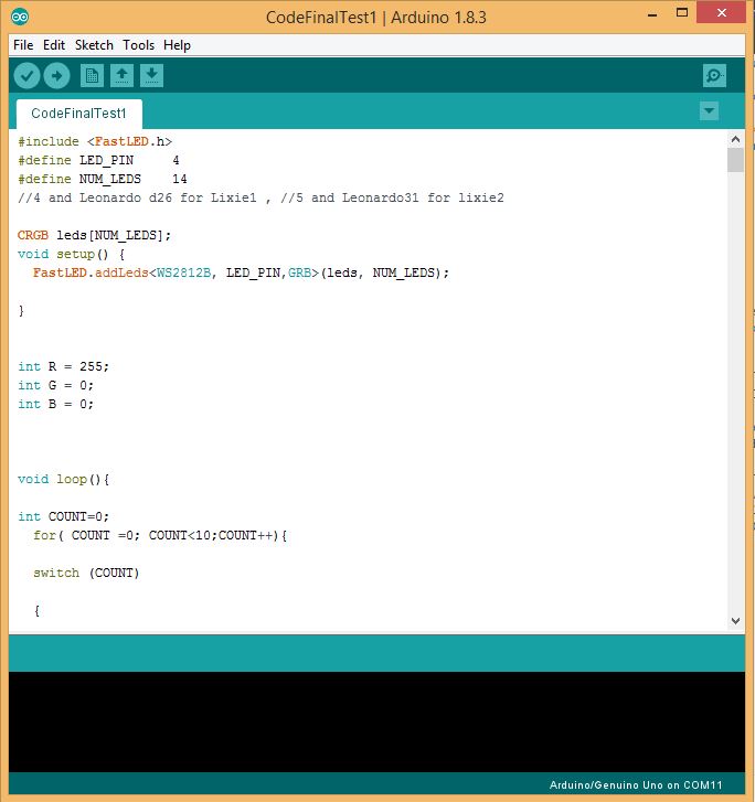 The programming of Lixie is based on Arduino IDE , as it is simple, easy and have multiple libraries. The two libraries that i used for programming the lixie digits are FastLEd.h and Adafruit Neopixel library.