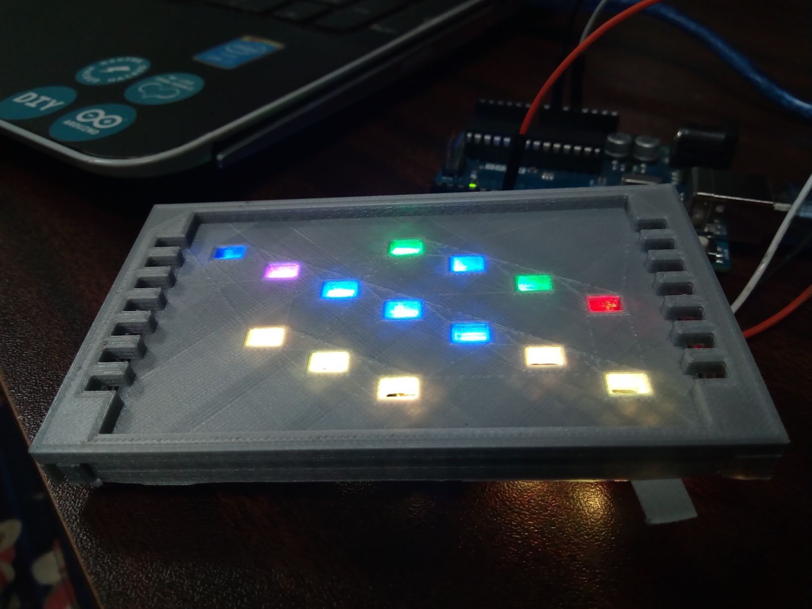 Afer soldering and connecting the wires, I tested the LEDs on Ardunino, because I had not designed the Arduino Leonardo yet.The LEDS were glowing very well and I was able to check different codes with Fastled.h and Adafruit Neopixelslibraries.