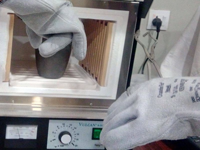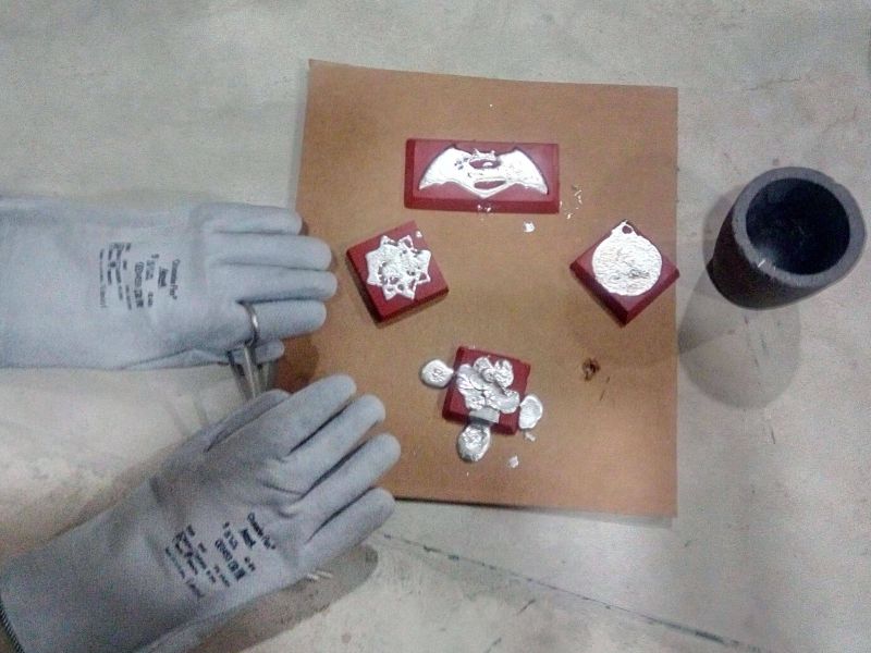 When, the temperature reaches the desired level, the molten Bismuth willbe carefully taken and poured into the molds.