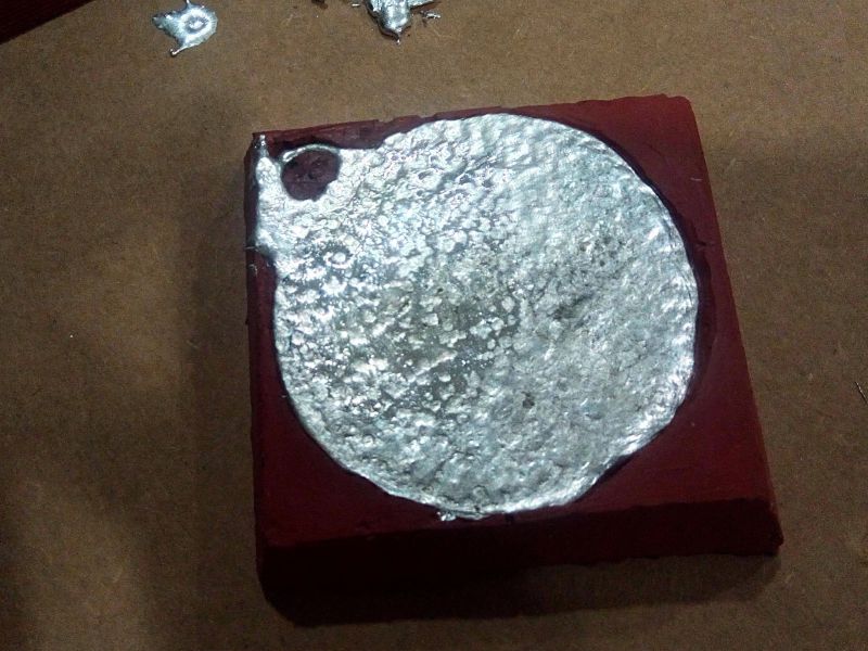 For metal casting , we are using Bismuth .Bismuth is a brittle, silvery-green metal that has a low melting temperature of 272 °F (521 °C)and high specific gravity.