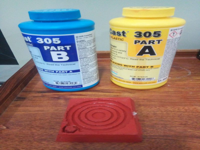 For casting, we have used plastic Cast 305. Both Part A and Part B are mixed in 1:1.