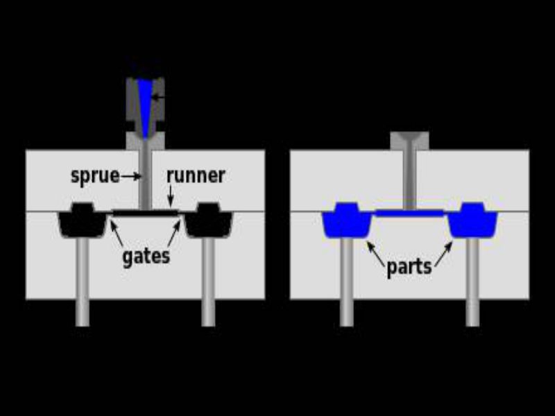 Injection moulding is a manufacturing process for producing parts by injecting molten material into a mold. Injection molding can be performed with a host of materials mainly including metals, (for which the process is called die-casting), glasses, elastomers, confections, and most commonly thermoplastic and thermosetting polymers. Material for the part is fed into a heated barrel, mixed (Using a helical shaped screw), and injected (Forced) into a mould cavity, where it cools and hardens to the configuration of the cavity.