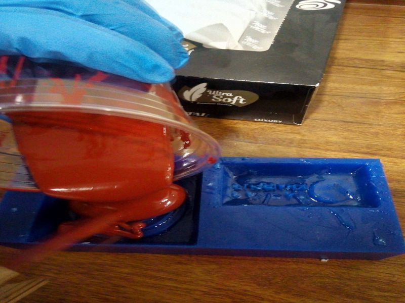 Now, it's time to pour the material into the mold carefully, as shown below: