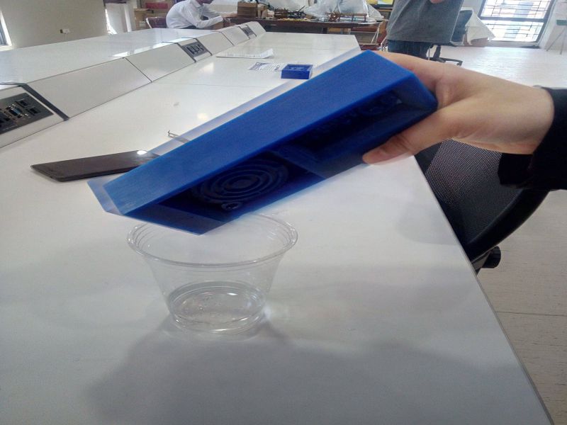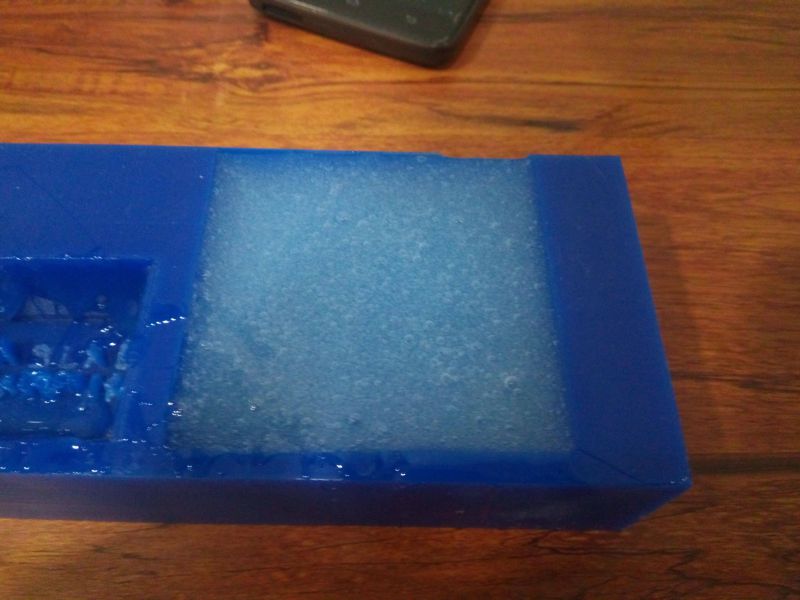 The mixture was ready and I poured it in the mold, and kept it for curing. There were a lot of bubbles and the vaccum mechanism that we had created wasn't working fine.So, I let the mold cured and check the trial results.
