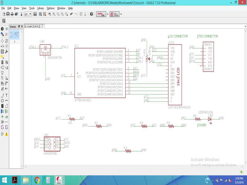 In the previous week, we designed and Input device and programmed it, while this week we are required to make an output device from the list provided in the class schedule and program it to do something.I decided to work on LED array through charlieplexing , but there were some issues in my design. Then, I was running short of time so, I decided to work on Standard LCD 16x2 + extras - white on blue. This is really an intresting module to work on. I read the pin description and other infromation from the link given HERE