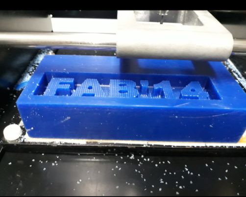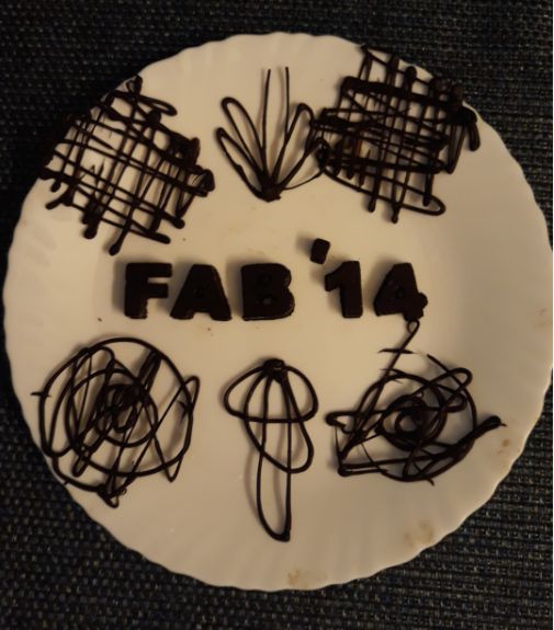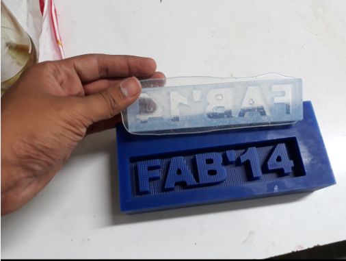 I was thinking of creating a text using chocolate. So i designed a mould that reads "FAB'14" usinh Rhino. The design was loaded in Modella and was milled on wax. Later the mould was created using SORTA CLEAR as it was food safe. The mould took 24 hrs to cure.