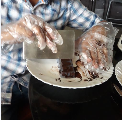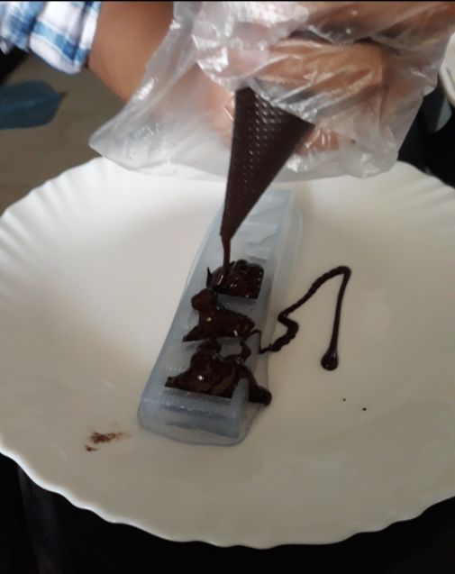 Melting the chocolate in the lab was a hard task to do. The lab did not have the right apparatus to do so. Chocolate cannot be melted by applying heat directly , the bottom most layer of the chocolate will be overheated and there are chances that it will stick to the appparatus.