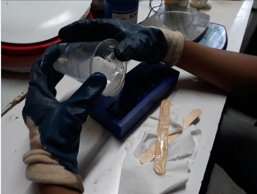 For making the composite the linen has to be soaked in resin before it is wrapped around the mold. For this assignment I am using epoxy resin. It is mixed in the ratio 2:1 as Part A: Part B as done in molding and casting week.