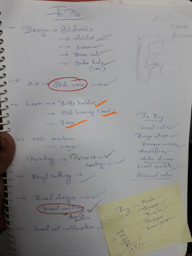 The time consuming tasks that worked after nultiple attempts were- board design, board milling, 3D printing , load cell calibration, elecronic programming and assembling.