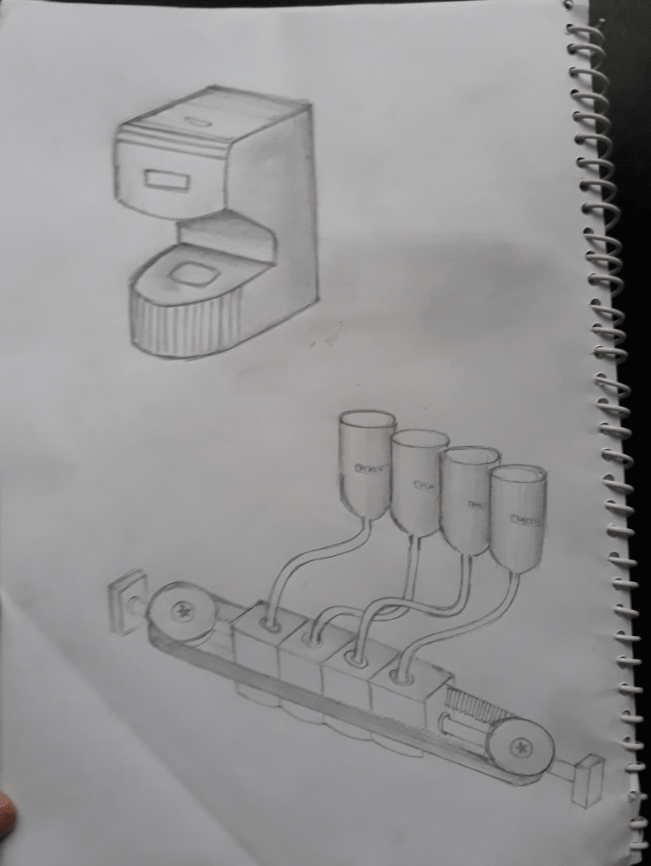 After making a rough sketch by hand I then coverted the idea into a 3D model using solidworks. With this 3D I got the idea of placing the components in the machine.