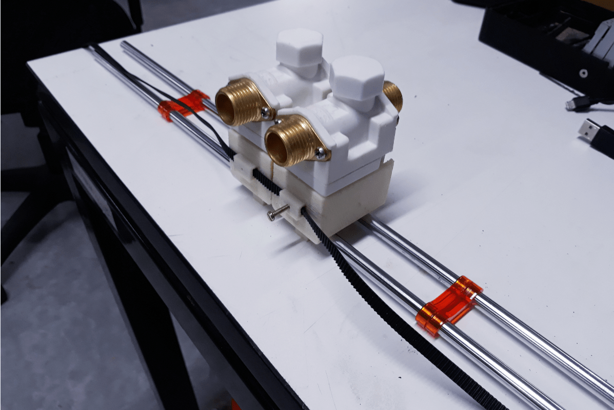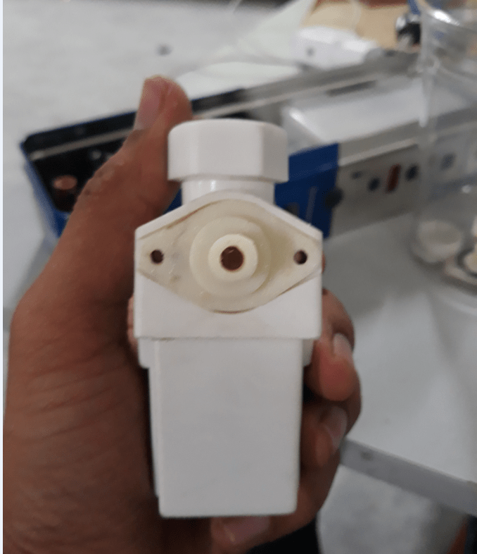 The case to hold the solenoid in place was made by 3D printing. Also the reducer for the 9mm silicon pipe, the case for motor and the mount for the pulley was also made by 3D printing.